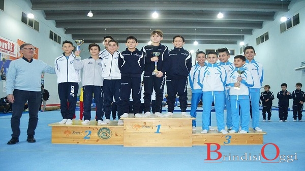 In pedana figurava anche un altro brindisino, proprio dell’Enel Ginnastica La Rosa, Angelo De Benedictis, in prestito alla società di Martina Franca.
