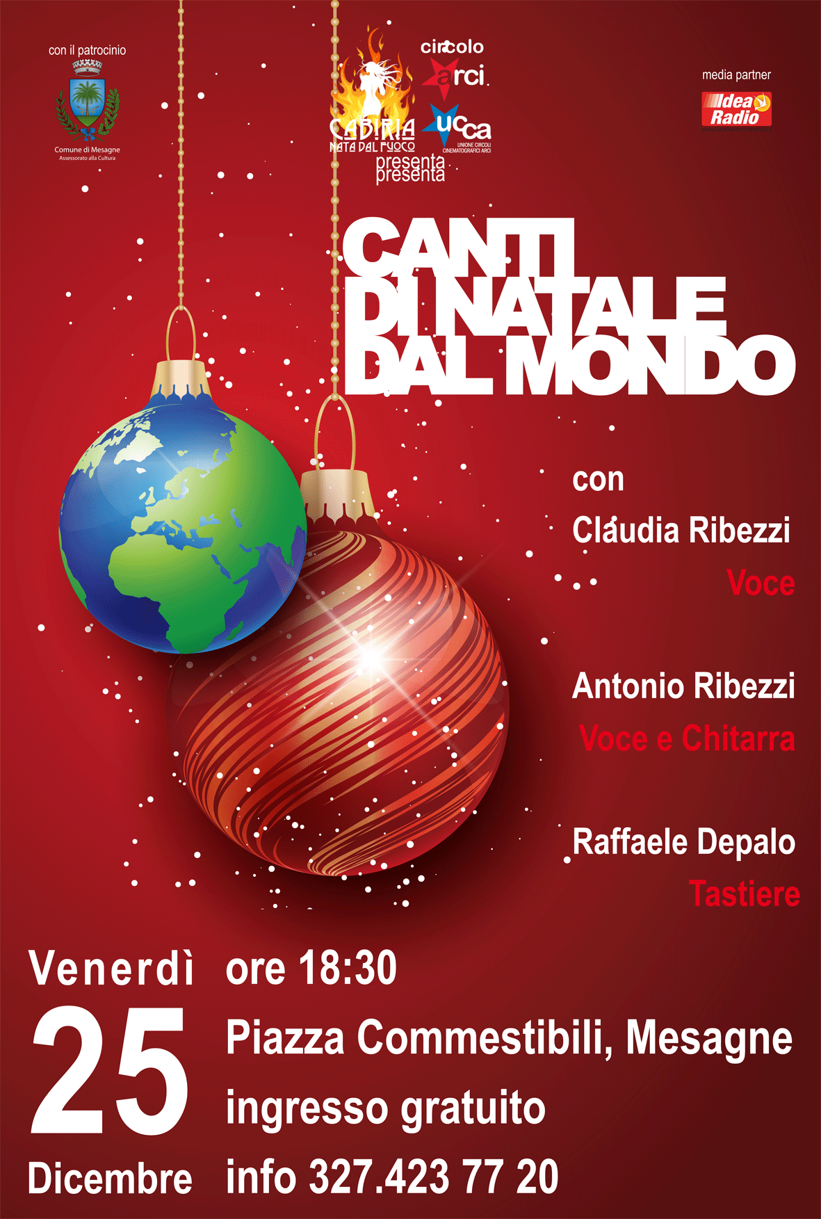 Già noti sul territorio pugliese e non solo gli artisti che si esibiranno sul palco: i fratelli Claudia e Antonio Ribezzi e Raffaele Depalo, rispettivamente voce, chitarra e tastiere, che da 30 anni riempiono molte piazze con la loro musica ricca di contaminazioni classiche, leggere, pop, liriche e jazz. Contaminazioni nate dalle diverse collaborazioni che tutti e tre gli artisti hanno avuto nel corso della loro carriera musicale. I fratelli Ribezzi, infatti, anche per il loro album “Din don dan” che presenteranno proprio in occasione del concerto “Canti di Natale dal mondo”, si sono avvalsi del lavoro del musicista jazz Alessandro D’angelo che ha riarrangiato molti noti brani della tradizione natalizia cantati in lingua italiana, inglese e latina, oltre ai due inediti, uno in italiano e l’altro in mesagnese, di cui i fratelli Ribezzi sono autori delle musiche e del testo.