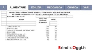 BRINDISI- Un valore della produzione che va dai 155milioni a 3 milioni e mezzo di euro. Sono 33 le aziende più produttive della provincia di Brindisi. Secondo la classifica della Camera di Commercio solo 19 nel 2016 hanno superato i dieci milioni di euro di produzione.