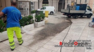 BRINDISI- Lavaggio e sbiancamento delle basole, rimozione del guano e delle gomme da masticare, Ecotecnica pulisce le strade del centro cittadino. Dopo la segnalazione di BrindisiOggi nell’articolo “Turisti di Como in visita alle scuole Pie: “Questa città è sporca, sembra abbandonata”, il Comune di Brindisi ha sollecitato Ecotecnica , ditta che si occupa della raccolta differenziata e della pulizia della città, ad un intervento massiccio sulle strade principali, in particolare nel centro cittadino. Da alcuni giorni, infatti la ditta sta lavorando tanto nelle prime ore del mattino quanto durante quelle della notte alla pulizia delle basole nel centro storico meta di tanti turisti soprattutto in questa stagione.