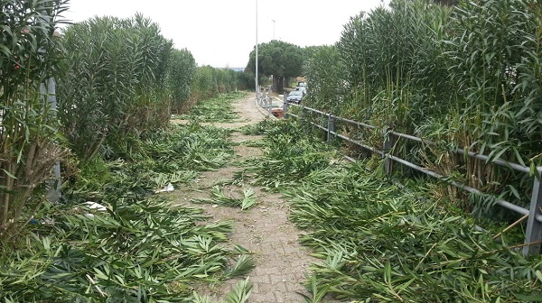 Come mostrano le immagini, alcuni segnali stradali sembrano riemergere dal fogliame: in questo modo, è stata messa in sicurezza anche la pista ciclabile, particolarmente frequentata nella mezza stagione da centinaia e centinaia di cittadini. Stessa sorte per i cigli della strada, che liberati dallo straripante fogliame tornano ad essere utili nella guida notturna, seppur si trovino nel centro urbano illuminato.